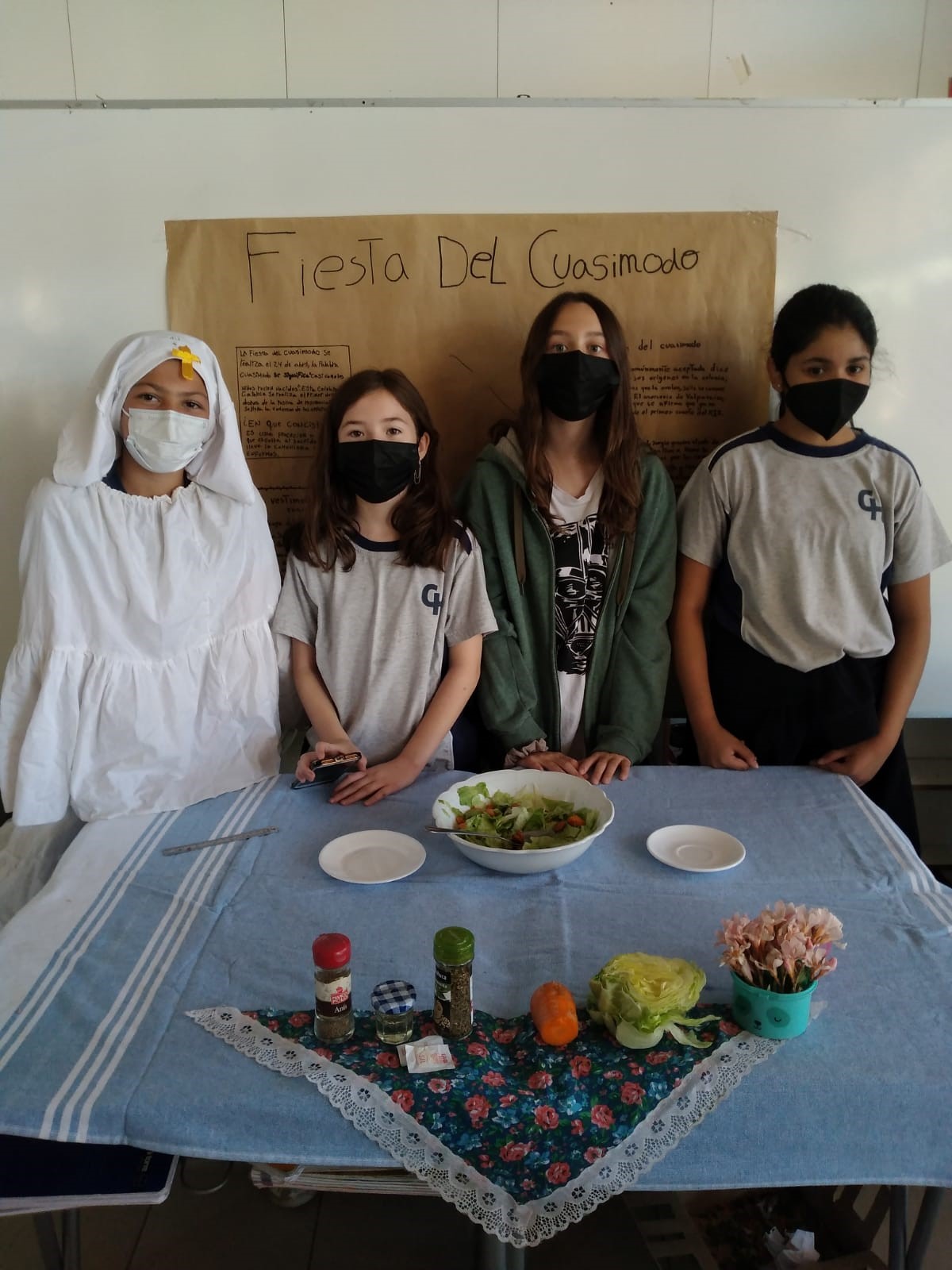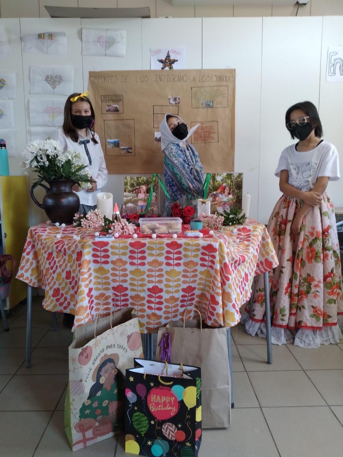 Los 5tos básicos, desarrollaron un proyecto de análisis de fuentes primarias escritas, sobre el trabajo y vida indígena en la Colonia, relacionándolas con los derechos de las personas; investigación en el texto, confección de afiches y muestra de alimentos, danzas y ritos sobre el sincretismo y patrimonio cultural de Chile y Latinoamérica.