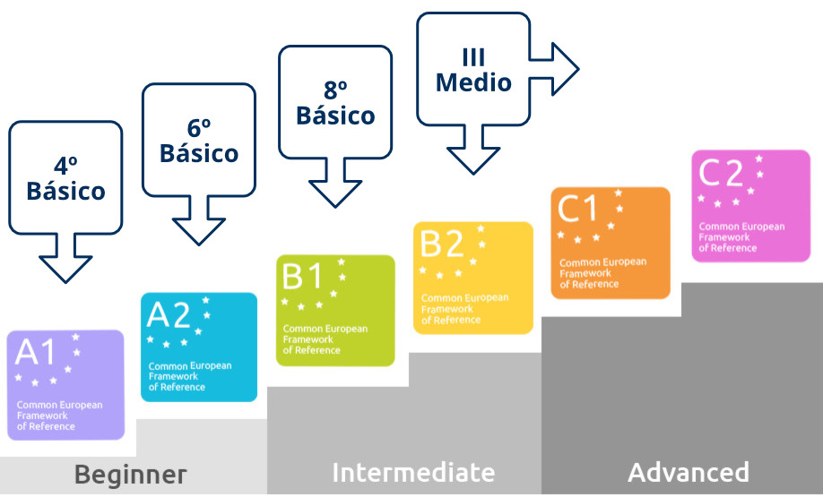 Trabajamos alineados al Marco Común Europeo y se espera que al egresar los alumnos alcancen un nivel B2 que corresponde a Intermedio Alto con el cual serán capaces de comunicarse con fluidez, leer textos complejos y escribir textos detallados sobre temas diversos.
